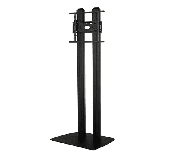 BT8583 to stylowy, dwukolumnowy stojak podłogowy przeznaczony do montażu dużych ekranów. Podstawa posiada niebrudzące gumowe nóżki, uchwyty ułatwiające przenoszenie dla poprawy estetyki. Ekran można zamontować na dowolnej wysokości na pionowych kolumnach o długości 1,8 m. Akcesoria B-Tech, takie jak półki AV, można zamocować bezpośrednio do kolumn.