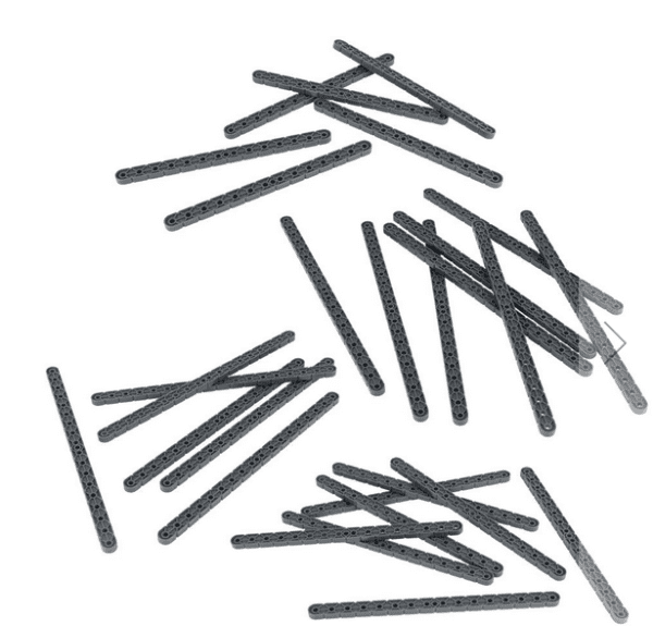 Zestaw 1x Beam Long Pack zawiera dodatkowe długie belki do wykorzystania przy budowaniu konstrukcji robotów i połączeń.